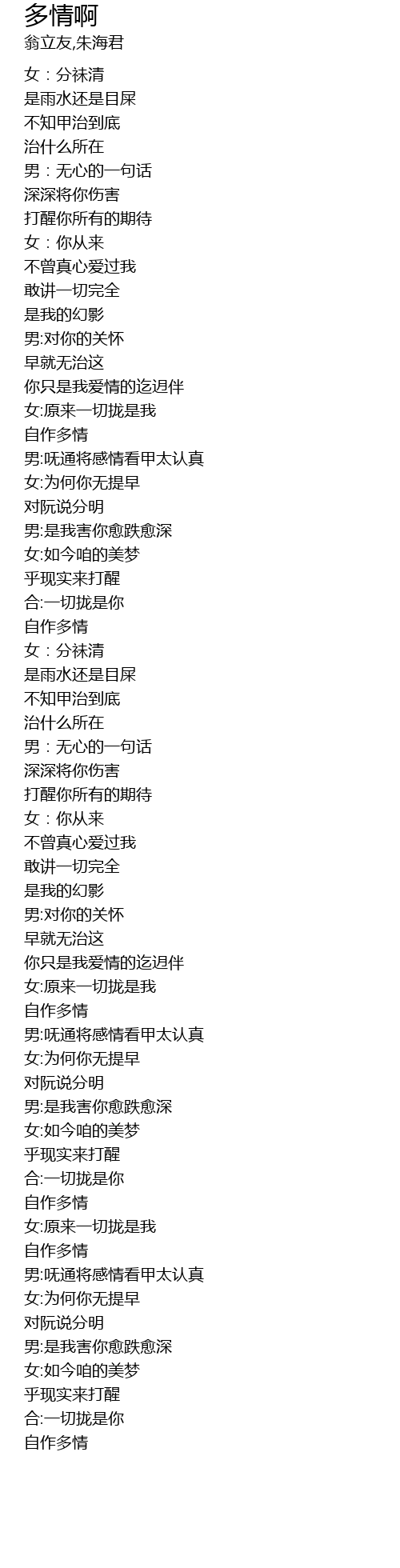 | [03:57.960] | nán: fǔ tōng jiāng gǎn qíng kàn jiǎ tài rèn zhēn |