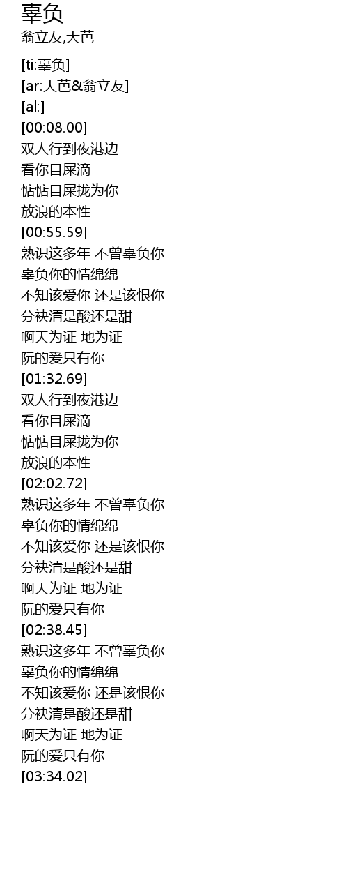 | [03:04.00] | 辜负你的情绵绵 |