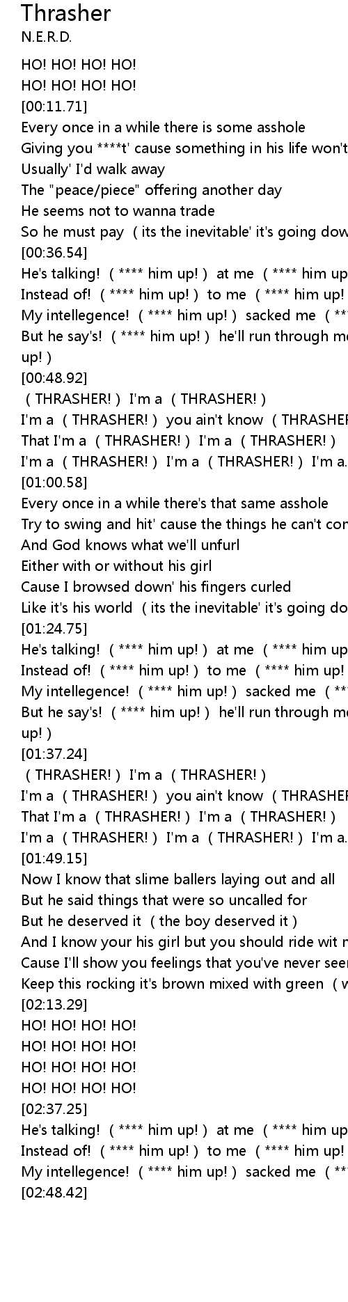 | [00:51.14] | I'm a (THRASHER!) you ain't know (THRASHER!) |