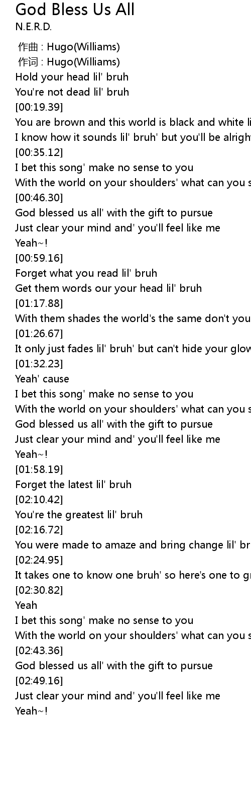 | [00:46.98] | God blessed us all' with the gift to pursue |