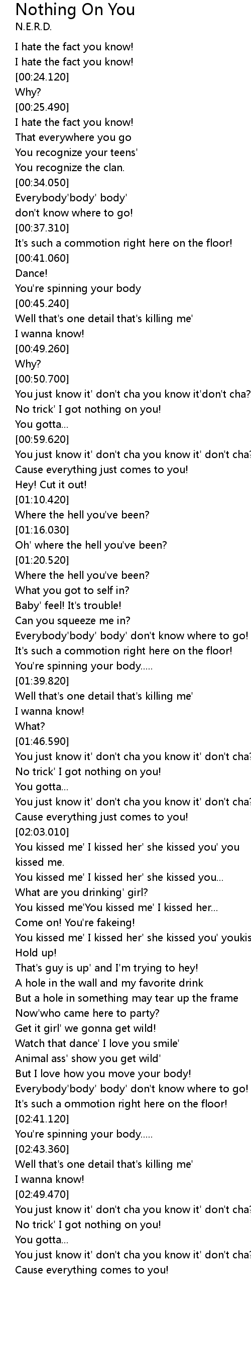 | [03:00.150] | You just know it' don't cha you know it' don't cha? |