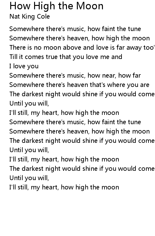Somewhere there's heaven, how high the moon |