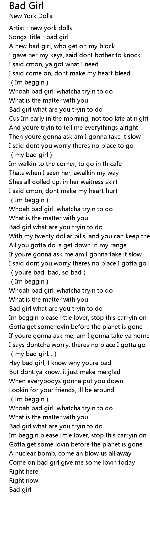 | [02:19.77] | Hey bad girl, I know why youre bad |