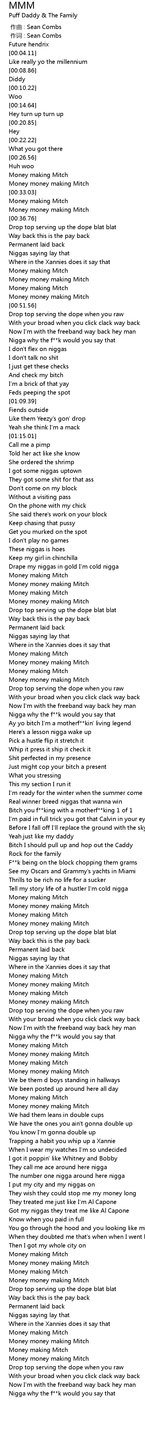 | [00:01.00] | 作词 : Sean Combs |