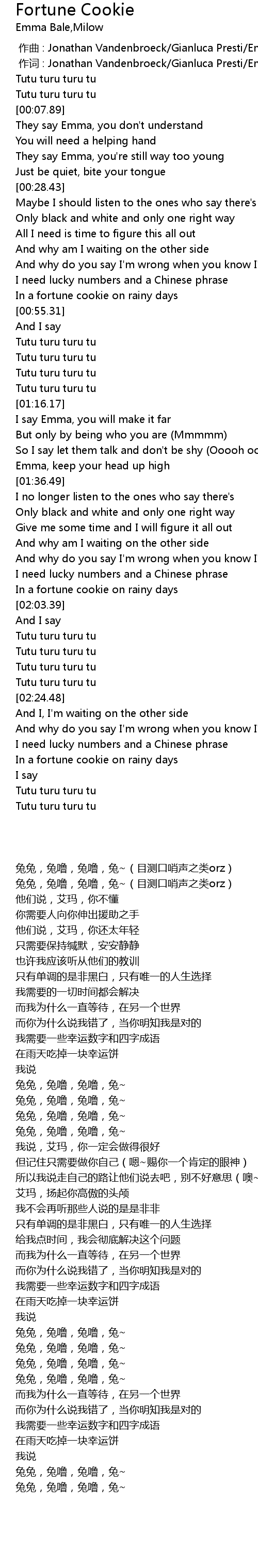 | [02:39.24] | In a fortune cookie on rainy days |