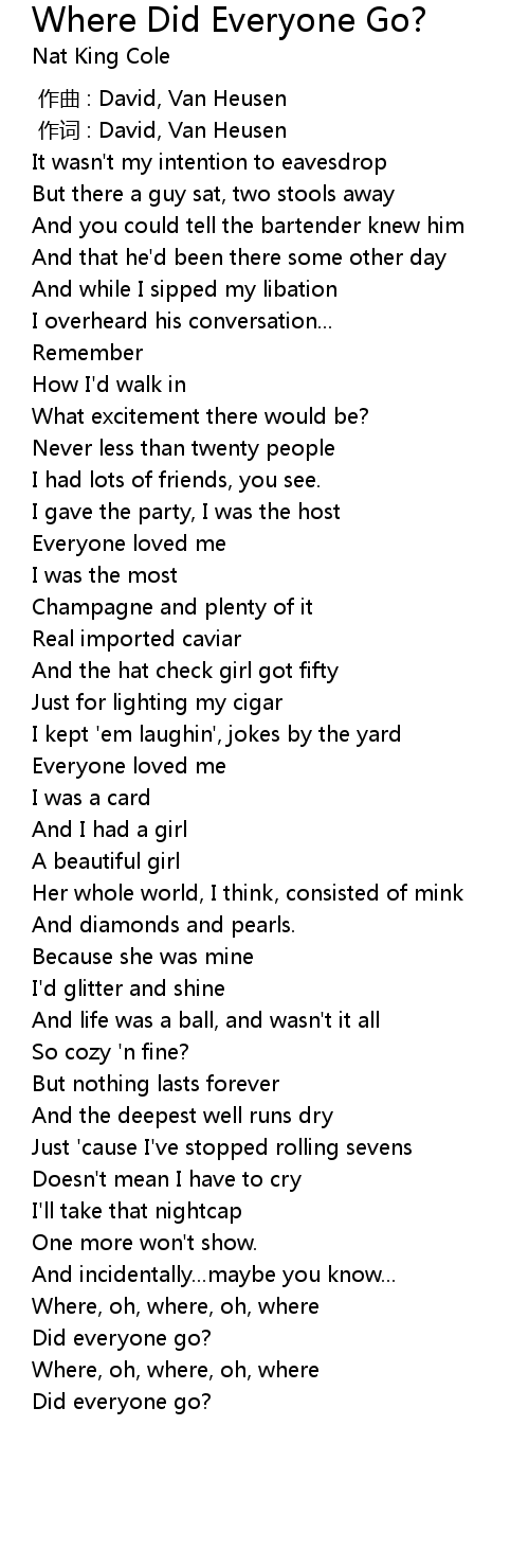 | Song | Where Did Everyone Go? |