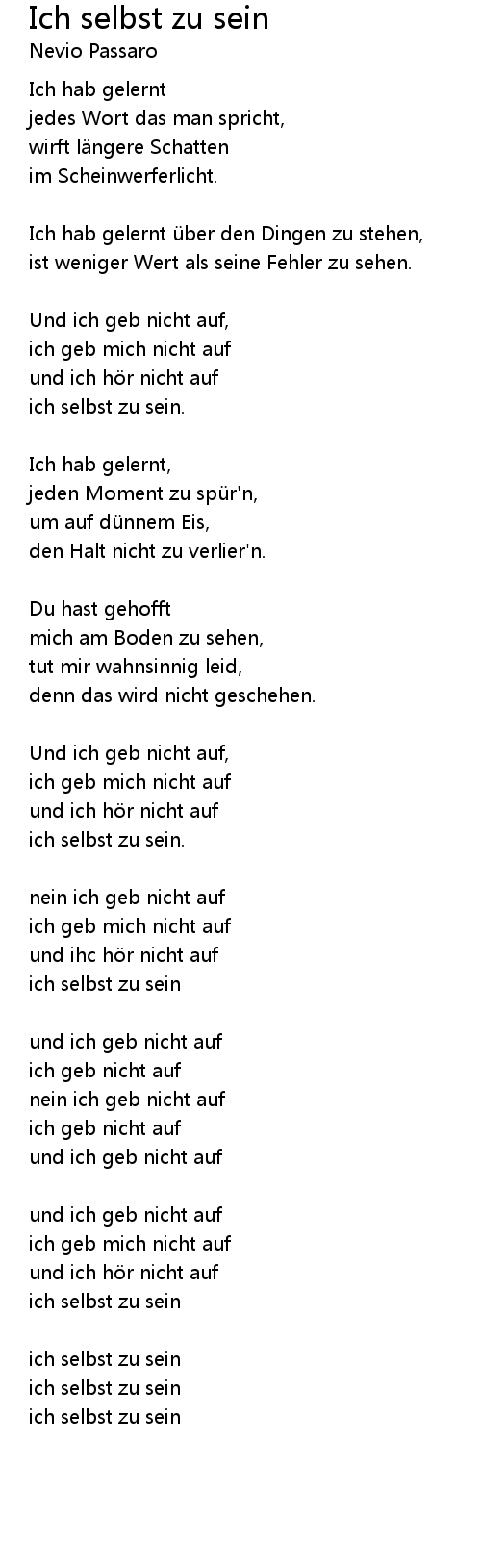 | Ich hab gelernt ü ber den Dingen zu stehen, | |