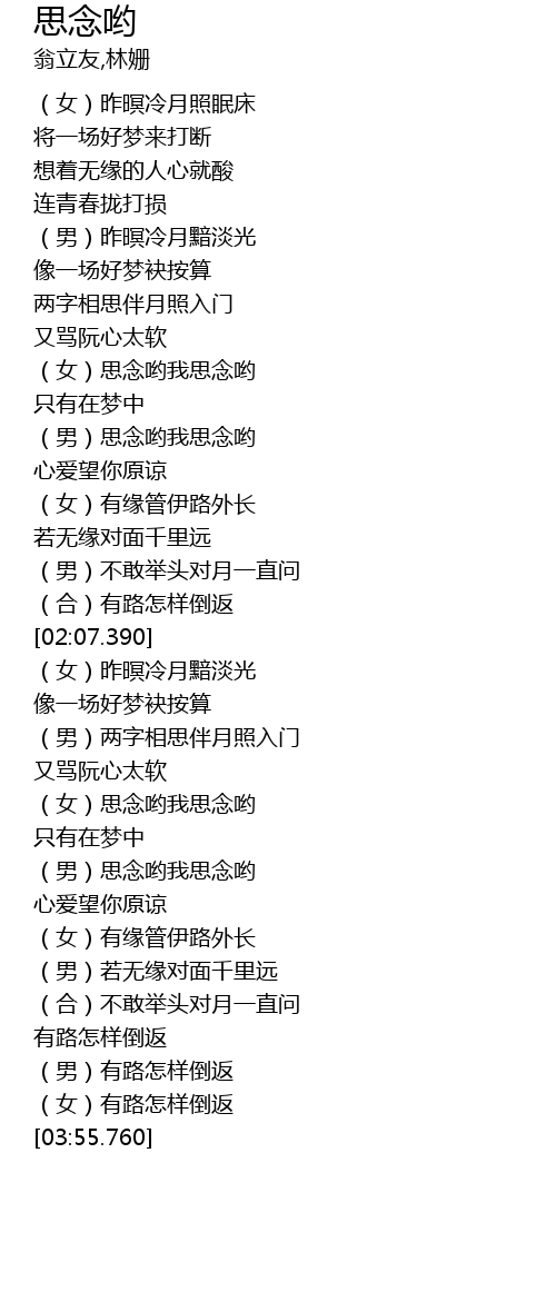 | [02:40.240] | (男)两字相思伴月照入门 |