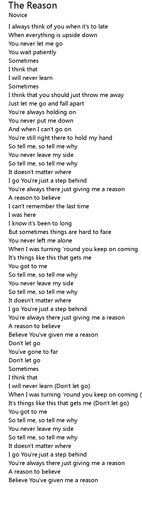 You're always there just giving me a reason |