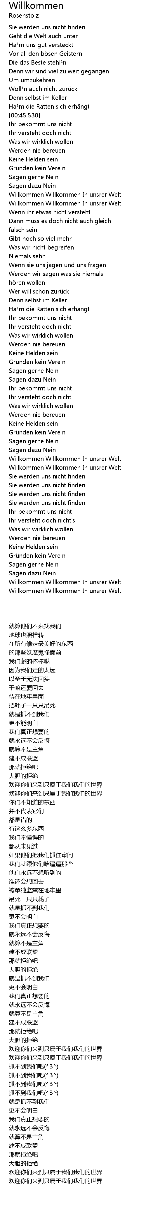 | [02:26.790] | Willkommen Willkommen In unsrer Welt |