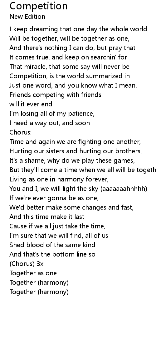 Competition, is the world summarized in |