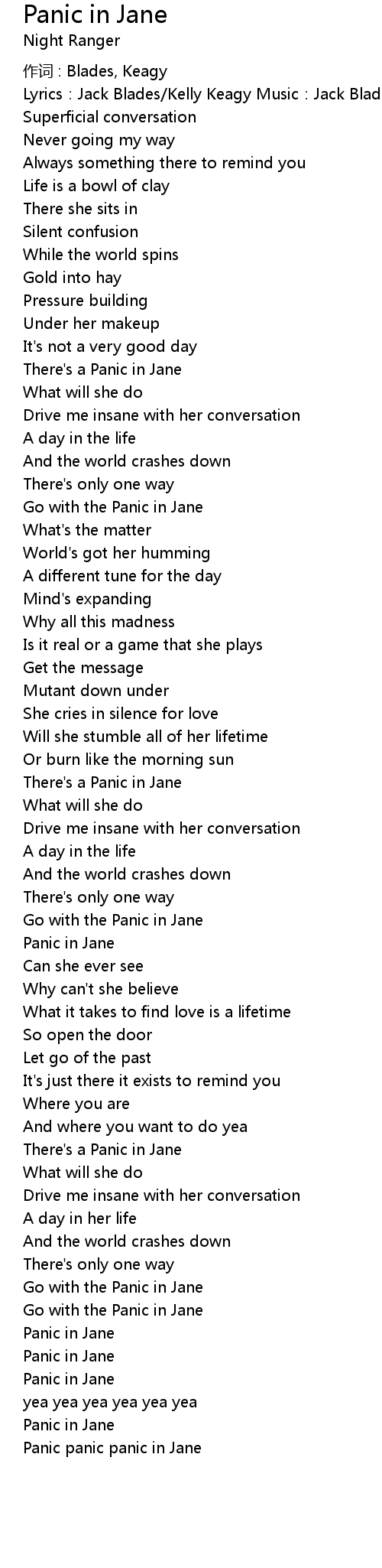 | Go with the Panic in Jane | |
