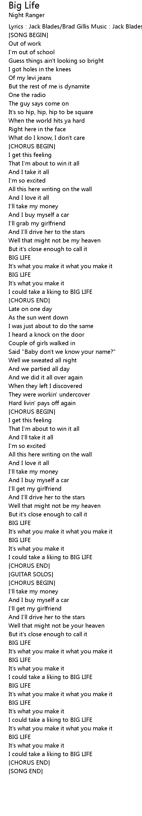 | Lyrics:Jack Blades/Brad Gillis Music:Jack Blades/Brad Gillis | |