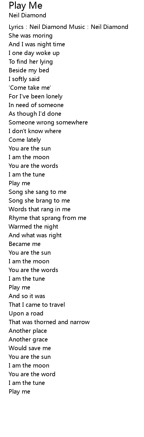| Lyrics:Neil Diamond Music:Neil Diamond | |