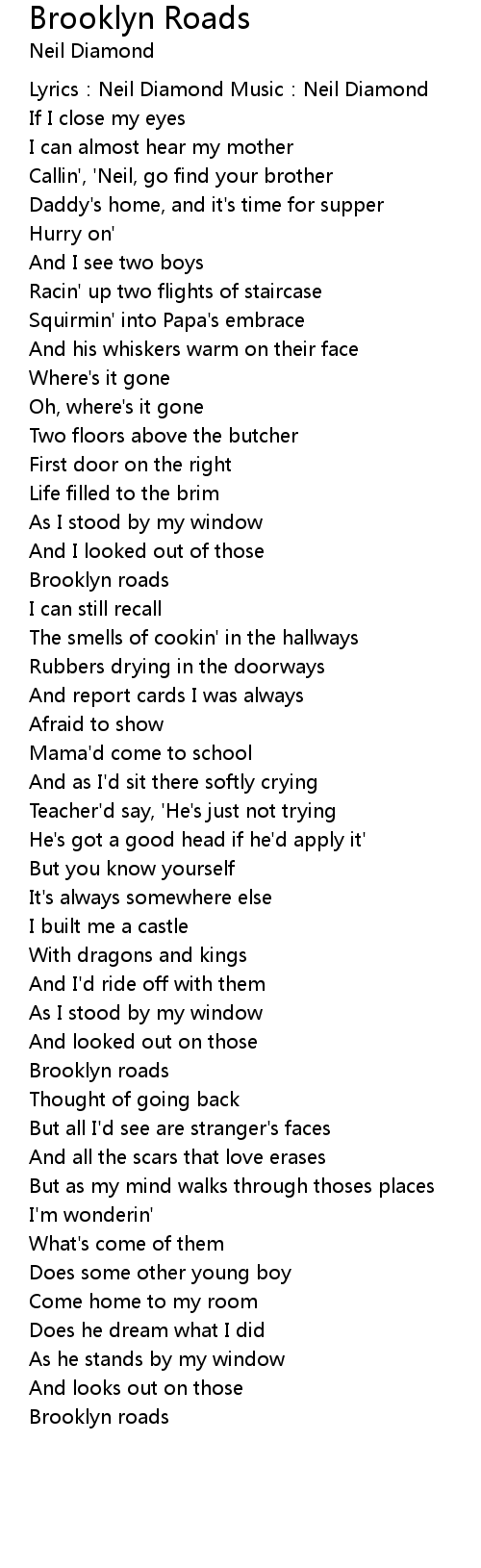 | Lyrics: Neil Diamond Music: Neil Diamond | |