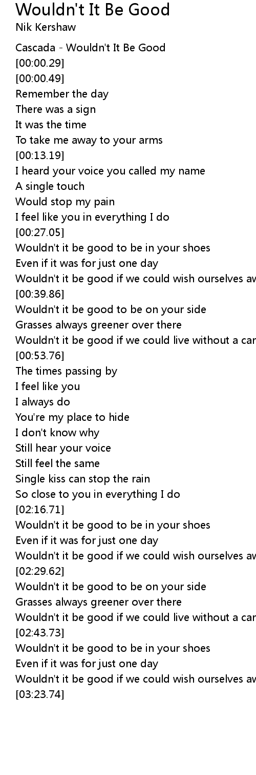 Wouldn't it be good to be on your side |