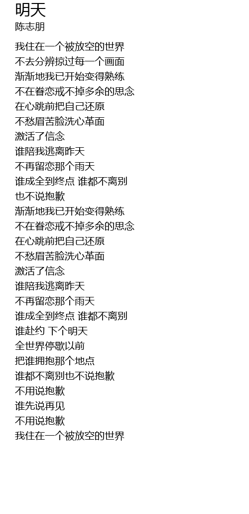 | [03:41.42] | 我住在一个被放空的世界 |
