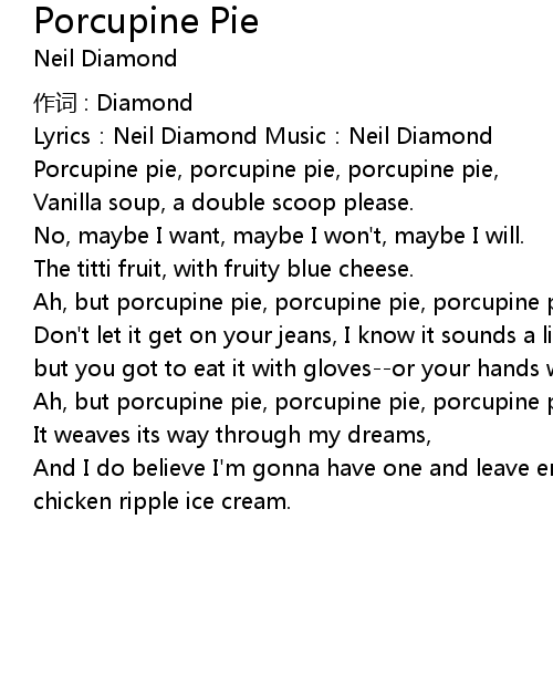 | Porcupine pie, porcupine pie, porcupine pie, | |