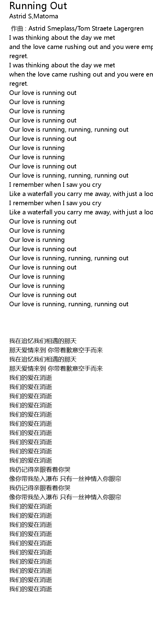 | [00:00.00] | 作曲 : Astrid Smeplass/Tom Straete Lagergren |
