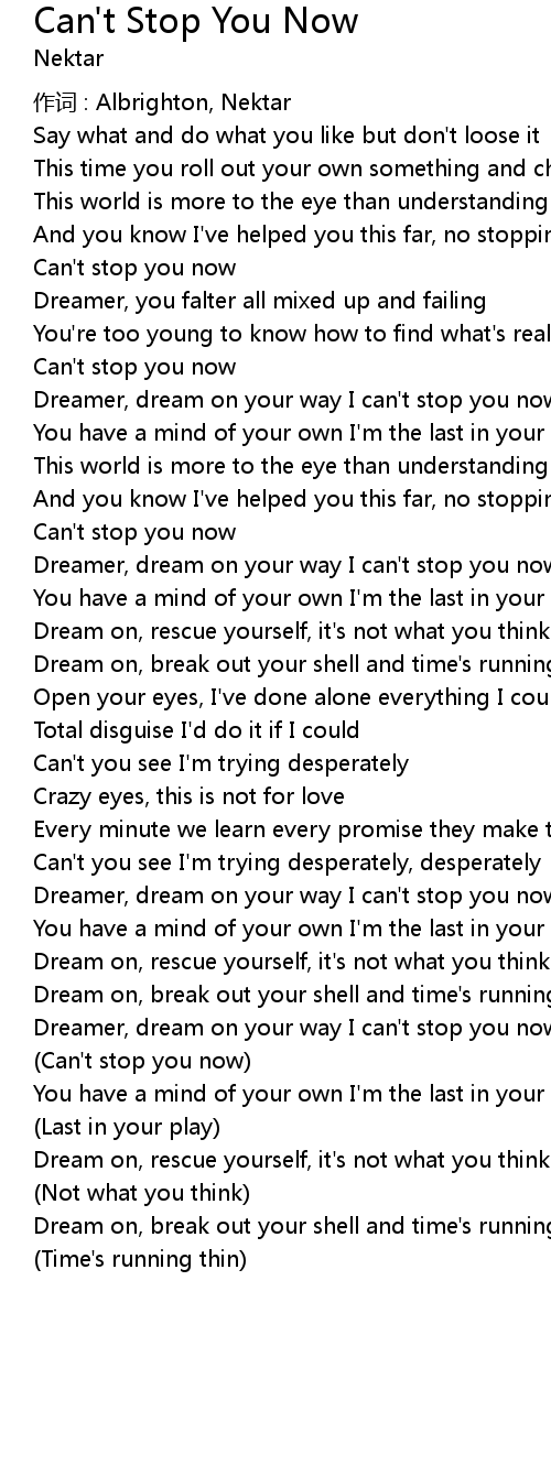 | Can' t stop you now | |