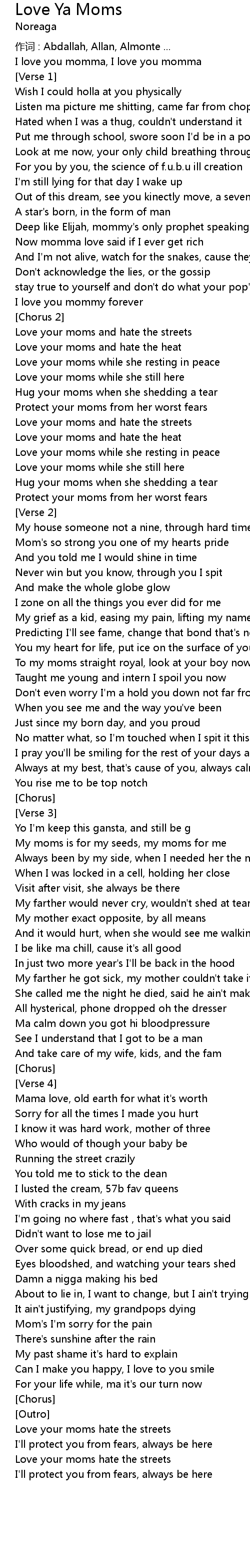 | Love your moms and hate the streets | |