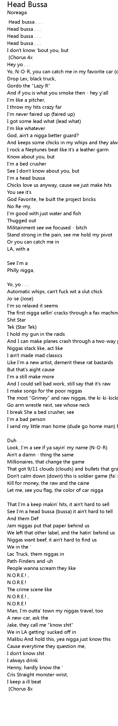 I'm a head bussa (head bussa) [Verse: Noreaga] [Chorus 4x] |