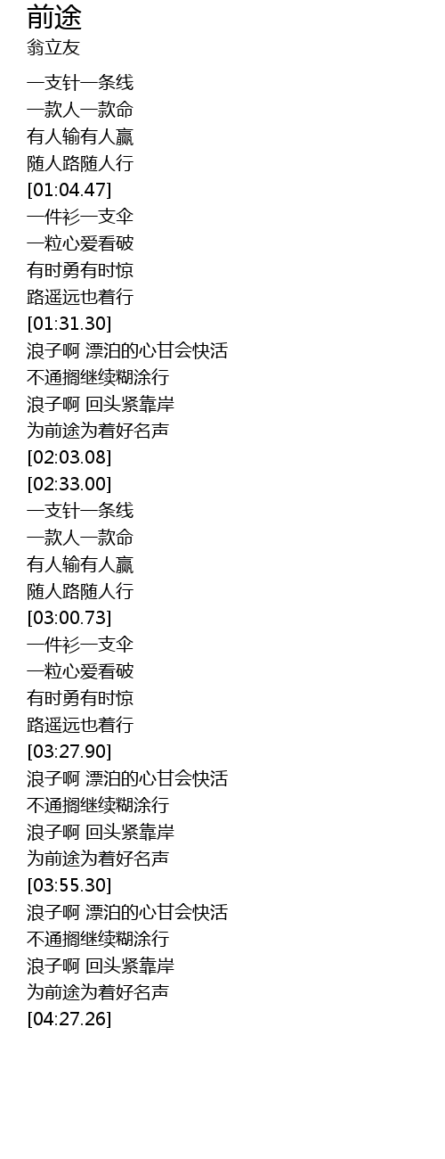 | [00:58.76] | 随人路随人行 |