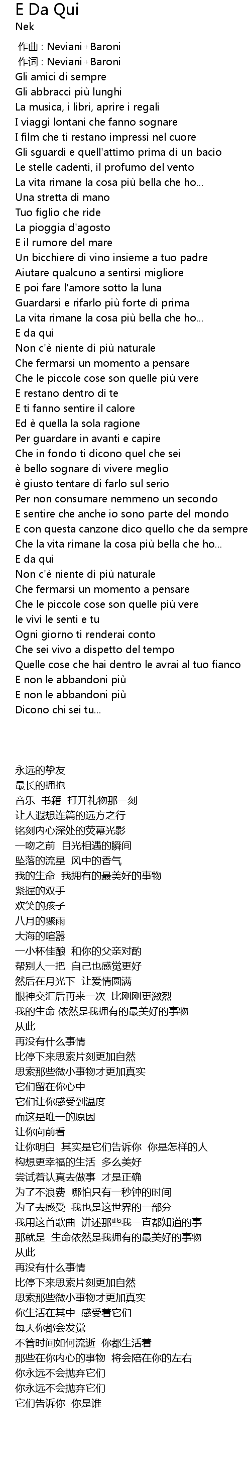 | [00:01.00] | 作词 : Neviani+Baroni |