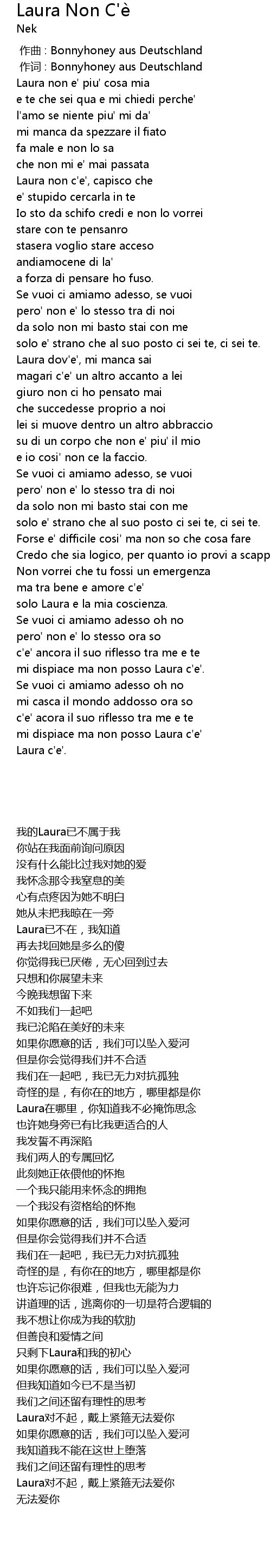 | [03:32.92] | mi dispiace ma non posso Laura c'e' |