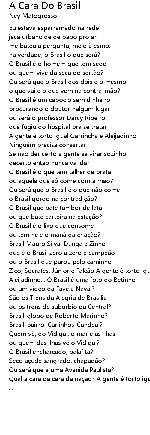 | Qual a cara da cara da nação? A gente é torto igual Garrincha e Aleijadinho ... |