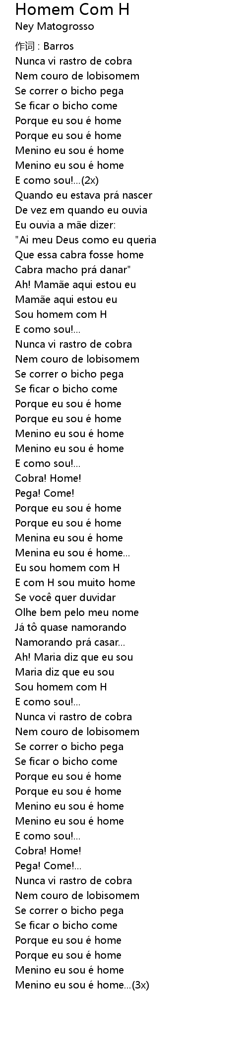 | Menino eu sou é home...(3x) |