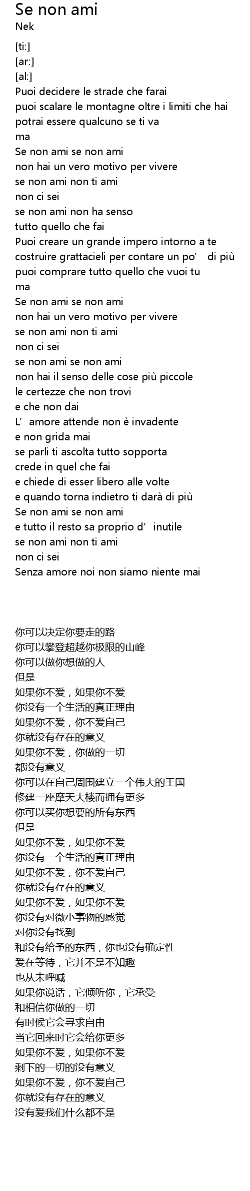| [03:03.44] | Senza amore noi non siamo niente mai |