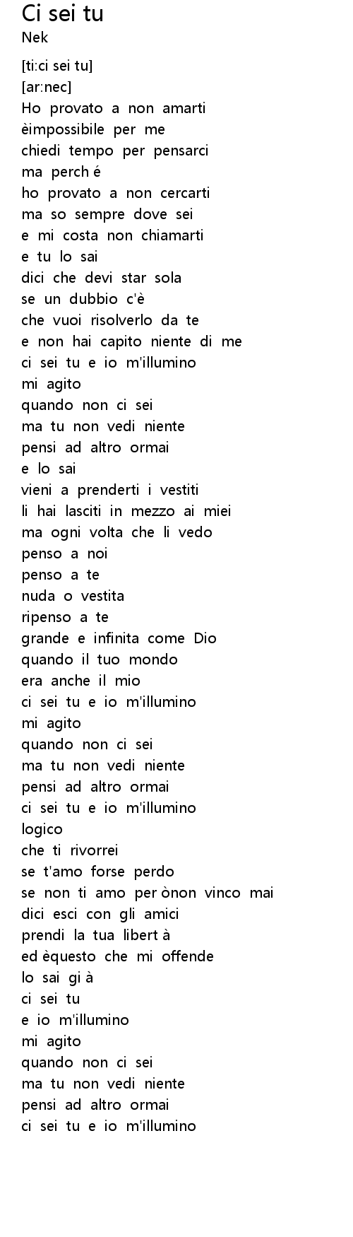| [02:01.942] | ci sei tu e io m' illumino |