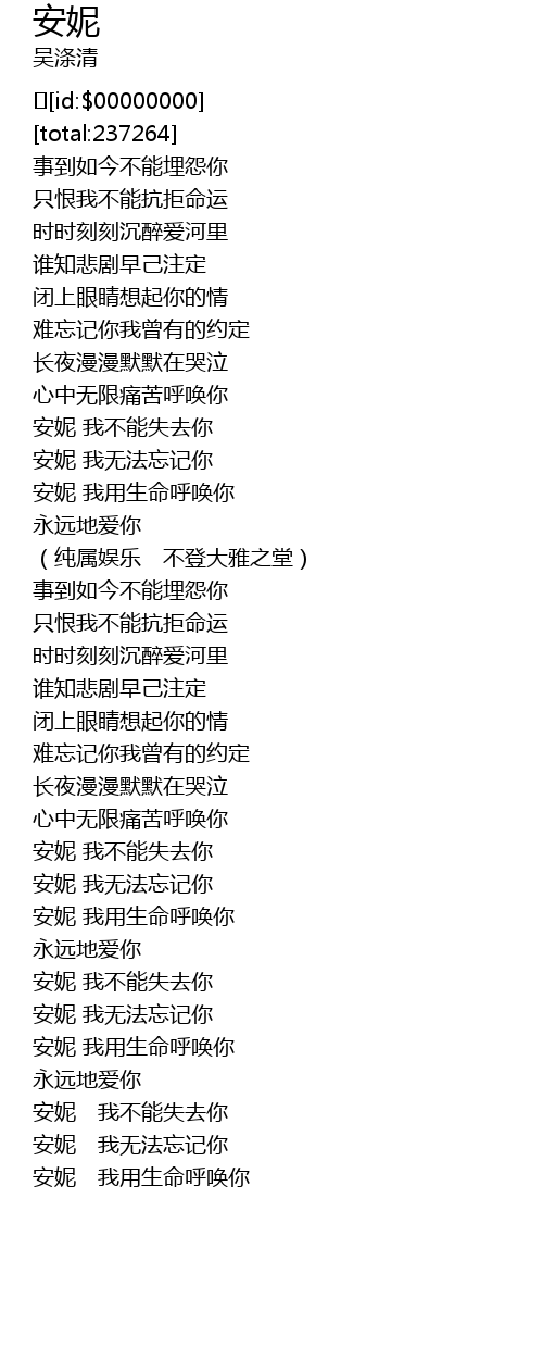 | [03:15.284] | 安妮 我无法忘记你 |