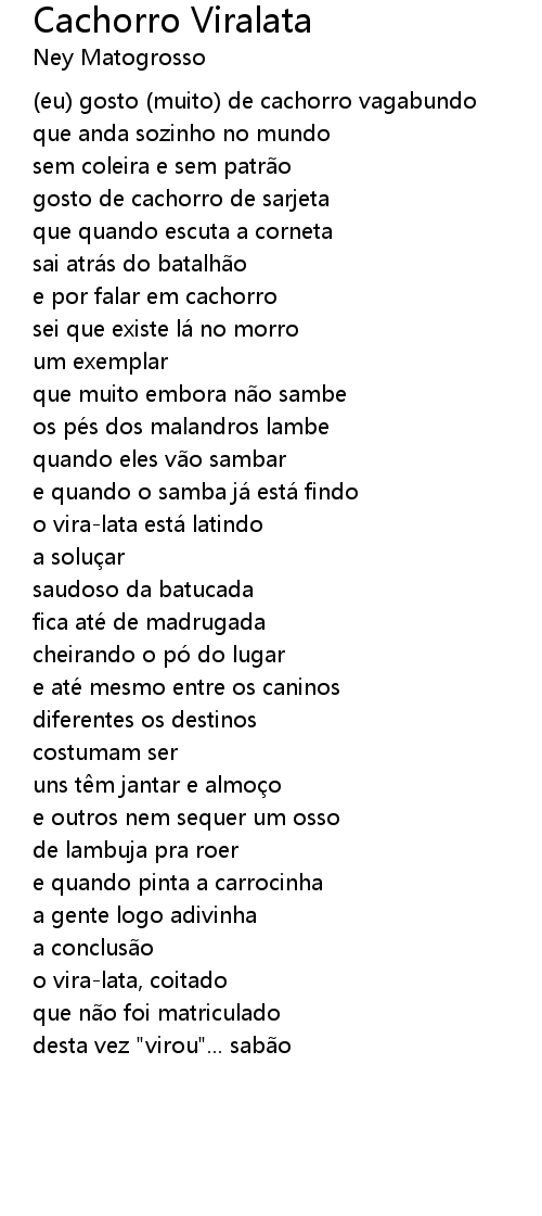 | (eu) gosto (muito) de cachorro vagabundo | |
