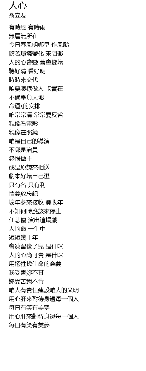 | [02:53.050] | 人的心尚可貴 是什咪 |
