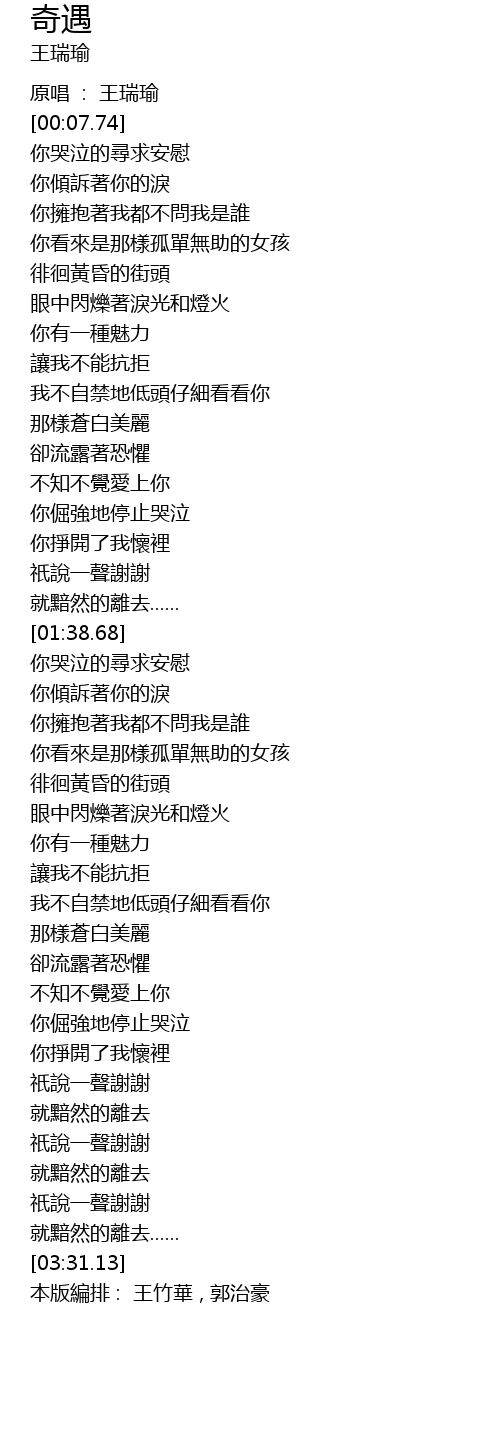 [03:31.85] 本版編排 : 王竹華 , 郭治豪
