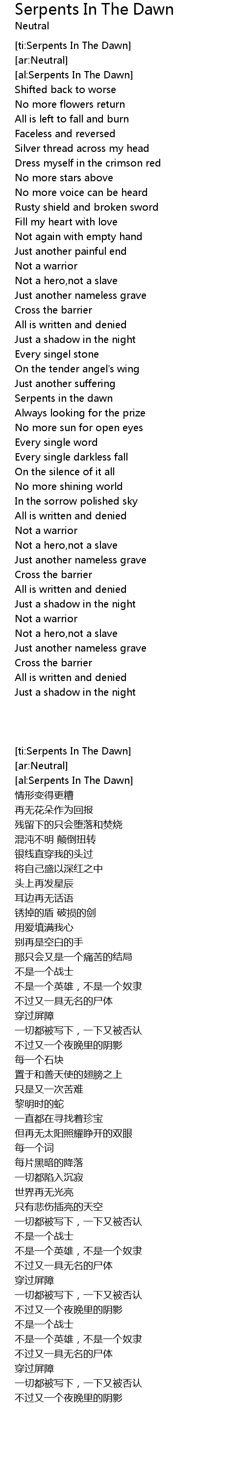 [ti:Serpents In The Dawn] |