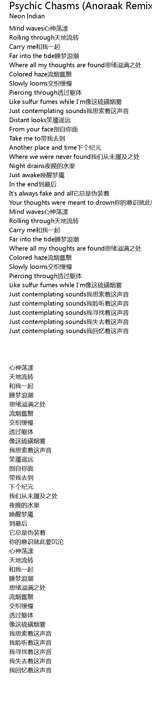 | [00:45] | Where all my thoughts are found sī xù yì mǎn zhī chù |