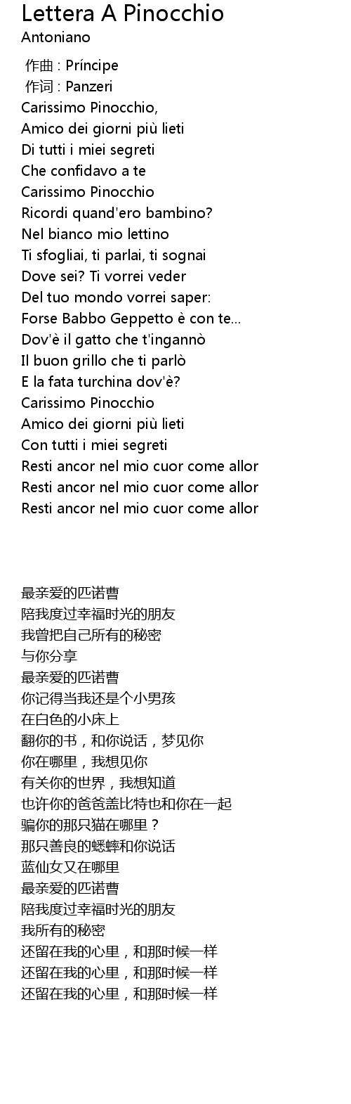 | [01:33.38] | Carissimo Pinocchio |