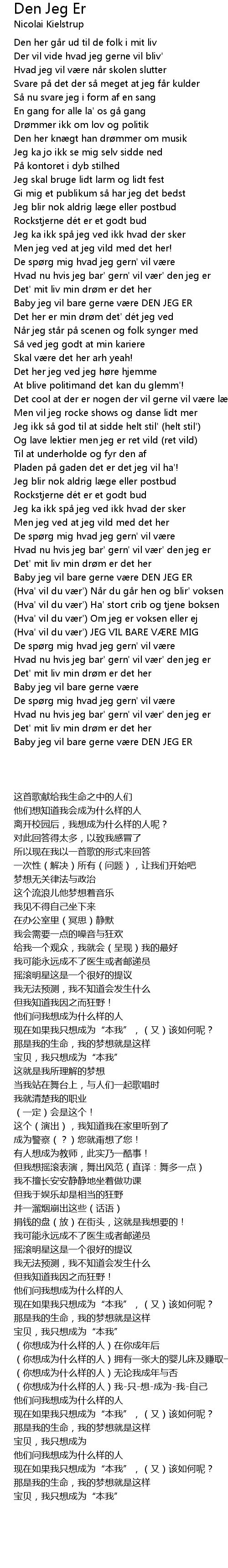 | [02:22.77] | Hvad nu hvis jeg bar' gern' vil v r' den jeg er |