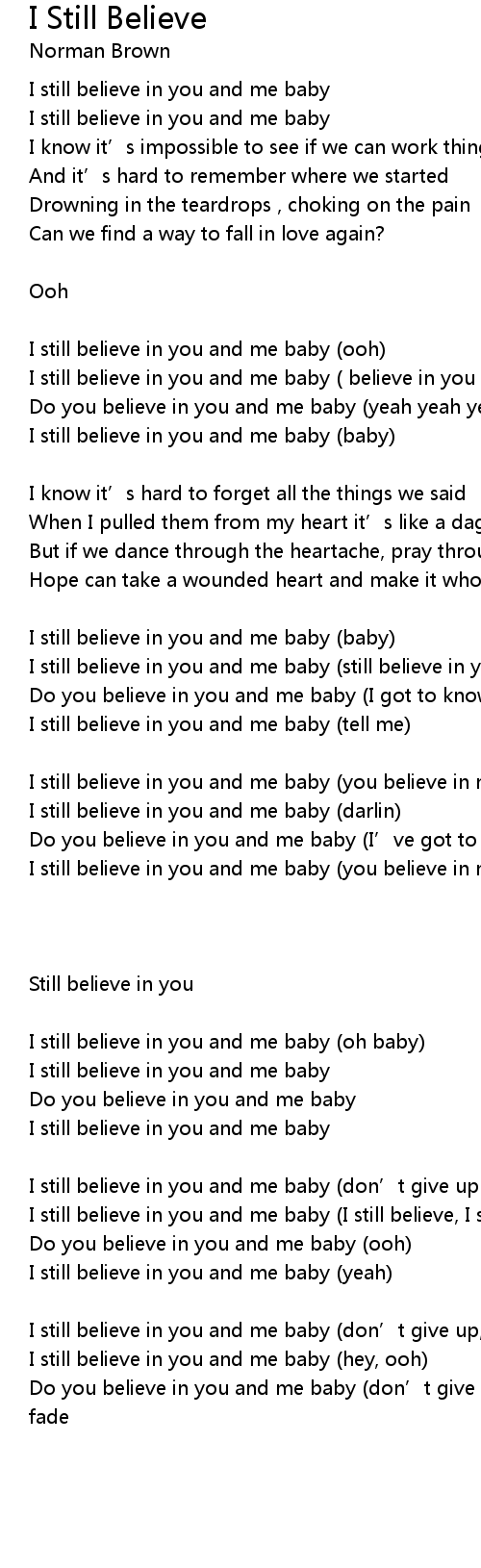 | I still believe in you and me baby (I still believe, I still believe) | |