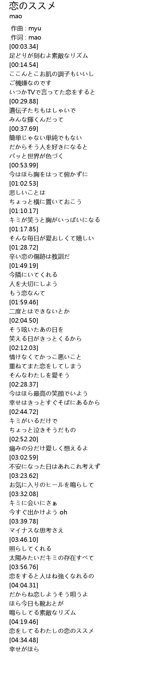 | [04:27.80] | 恋をしてるわたしの恋のススメ |