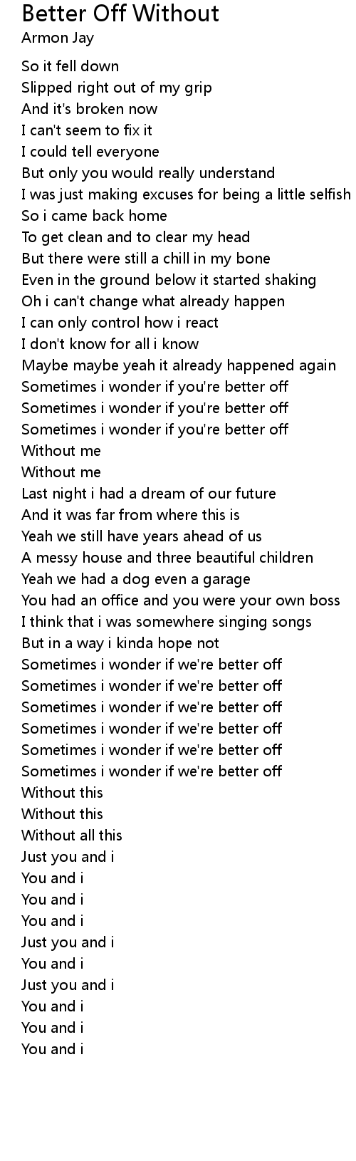 | [02:43.800] | Sometimes i wonder if we're better off |