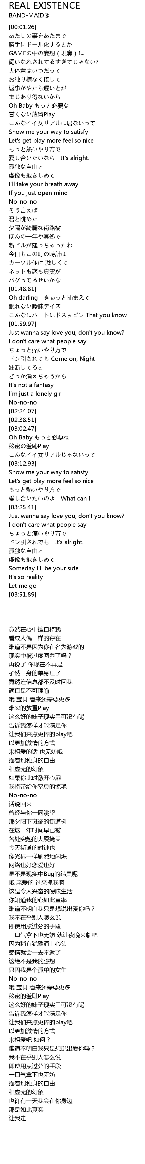 | Song | REAL EXISTENCE |