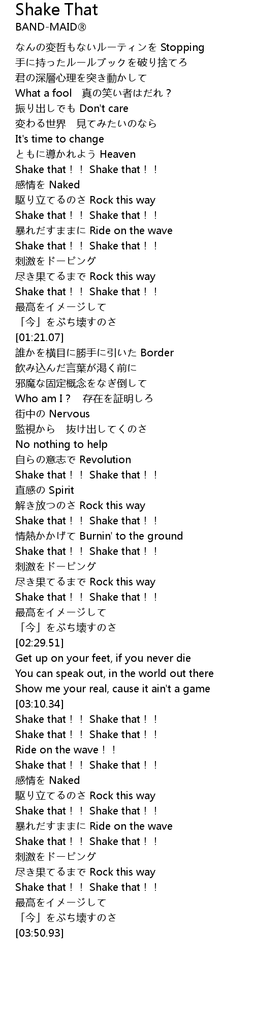 | [02:21.41] | Shake that!! Shake that!! |