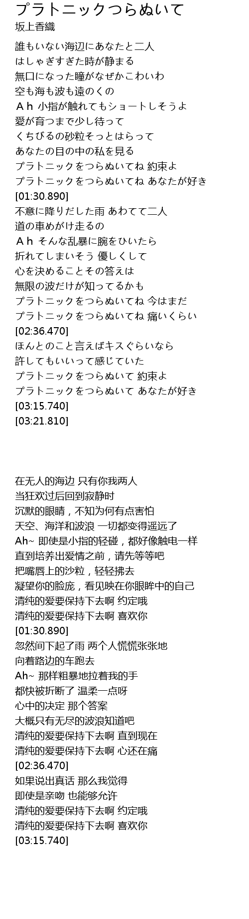| [03:09.080] | プラトニックをつらぬいて あなたが好き |