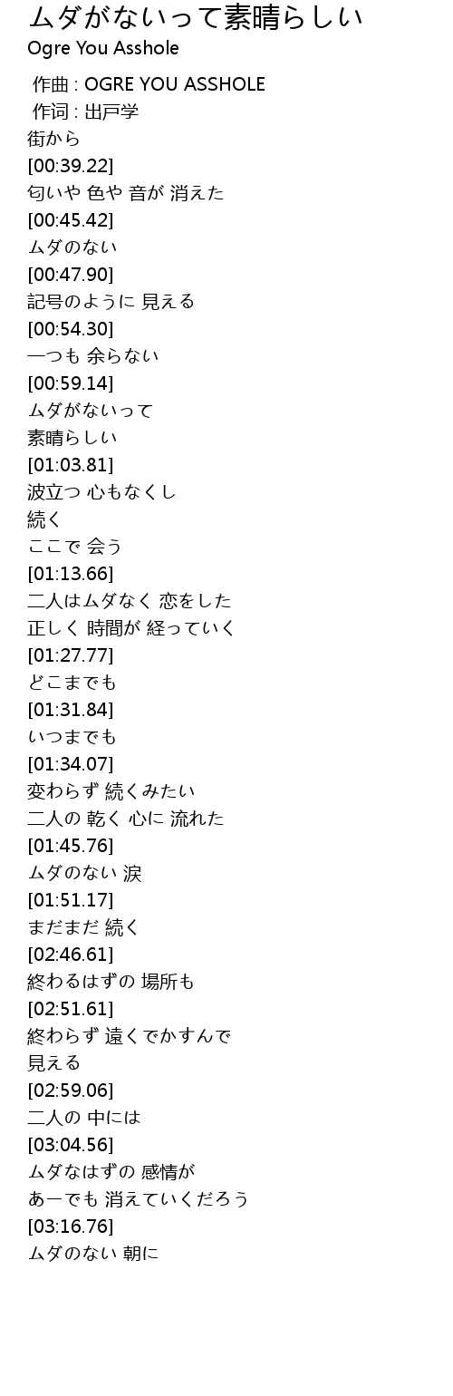| [00:00.00] | 作曲 : OGRE YOU ASSHOLE |