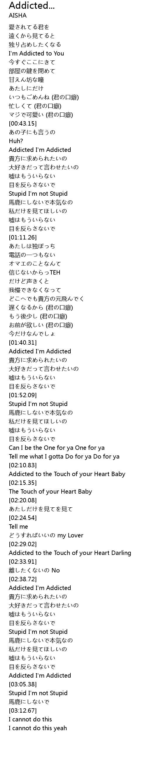 | [02:41.05] | Addicted I'm Addicted |