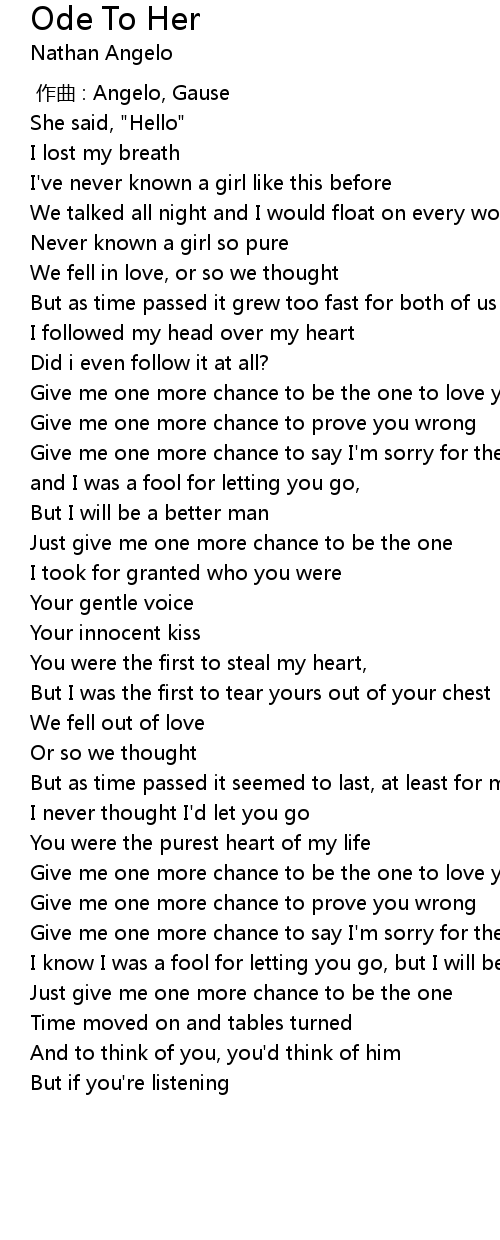 | [00:56.39] | Give me one more chance to be the one to love you |